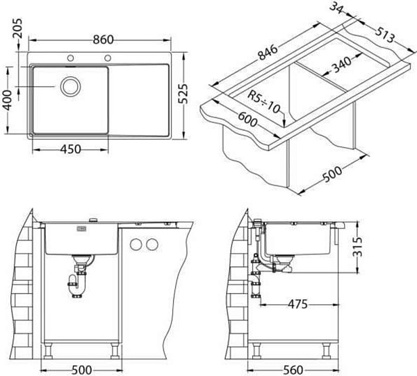 ALVEUS PURE UP 50 KMB 90 FI нержавеющая сталь мойка 1123792