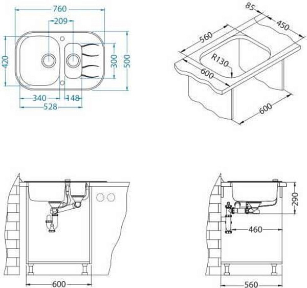Отсутствие проделанных заранее отверстий в мойке делают ее более универсальной. Вы можете установить смеситель, дозатор, кран ля питьевой воды именно там, где Вам это удобно. Сделать отверстие в мойке можно с помощью обычного домашнего инструмента, и не требует профессиональных навыков.