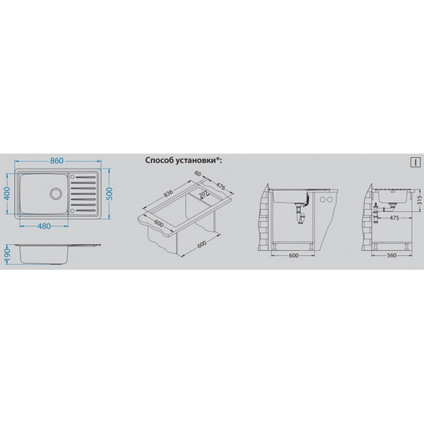 Мойка с площадкой под смеситель, облегчает установку смесителя на кухню, дает дополнительную гарантию герметичности смесителю.
