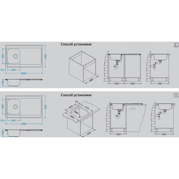Оборачиваемая мойка - универсальная мойка с крылом, которую в заивисимости от особенностей конкректной кухни можно развернуть в любую сторону, чаша может быть как слева, так и справа