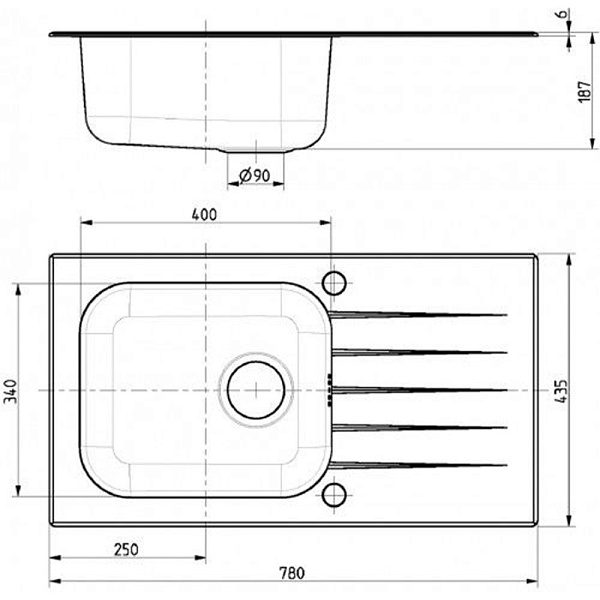 Мойка с площадкой под смеситель, облегчает установку смесителя на кухню, дает дополнительную гарантию герметичности смесителю.