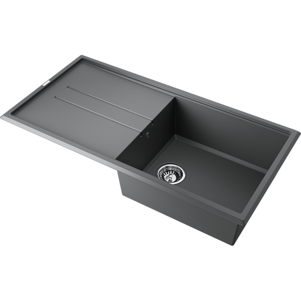 • Мойка черного цвета создана из материала «Tetogranit Metal». В его составе: акриловая смола и натуральный гранит с добавлением металлических частиц, которые придают блеск и мерцание поверхности мойки. «Tetogranit Metal» отличается максимальной устойчивостью к температурным перепадам и ударам;