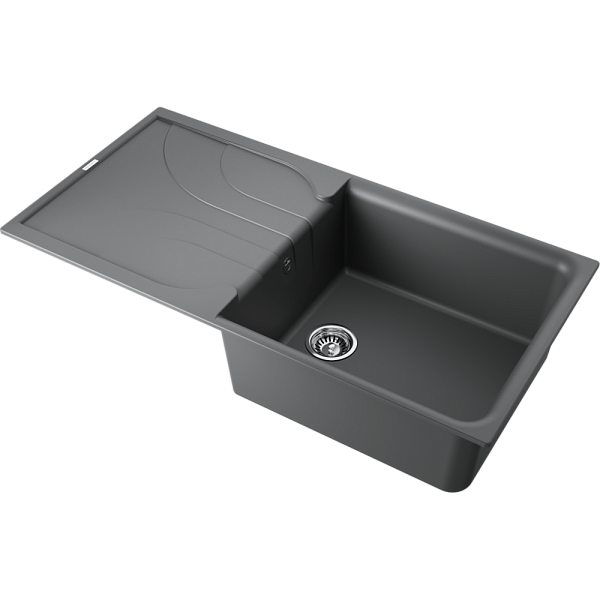 • Мойка черного цвета создана из материала «Tetogranit Metal». В его составе: акриловая смола и натуральный гранит с добавлением металлических частиц, которые придают блеск и мерцание поверхности мойки. «Tetogranit Metal» отличается максимальной устойчивостью к температурным перепадам и ударам;
