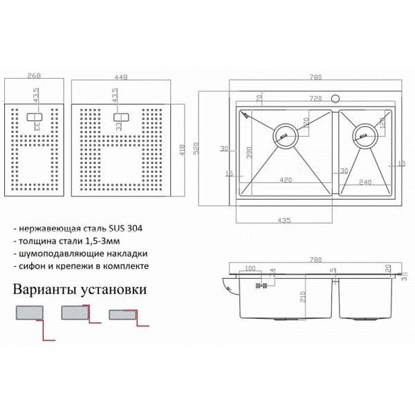 Размер чаши: 420 х 390, 240 х 390 мм