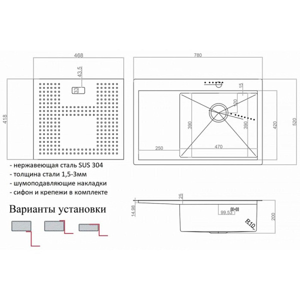 ZORG ZM N-7852-R мойка нержавеющая сталь