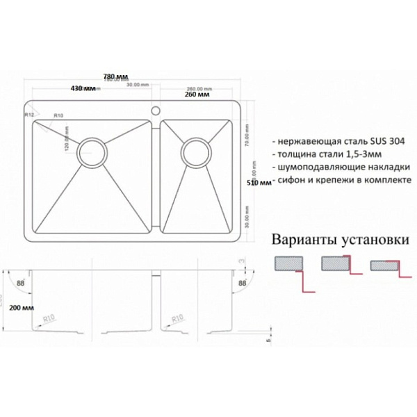 ZORG R 78-2-51-L мойка нержавеющая сталь