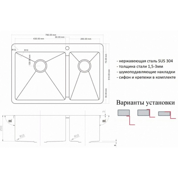 ZORG SZR-78-2-51-L BRONZE мойка бронза