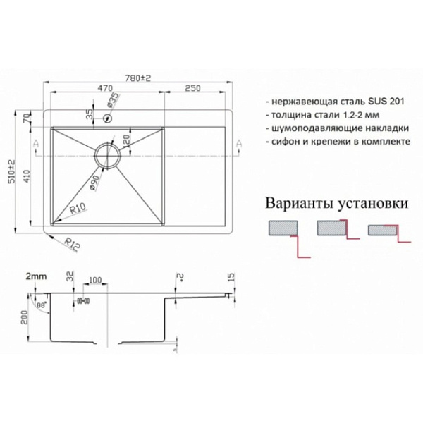 Толщина стали: 1,2-2 мм