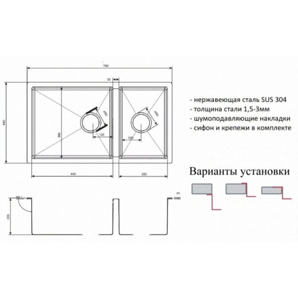 Толщина стали: 1,5-3 мм
