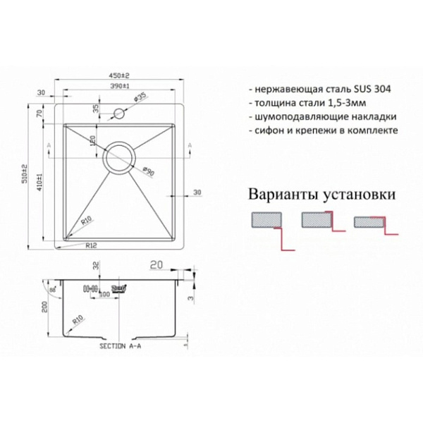 Толщина стали: 1,5-3 мм