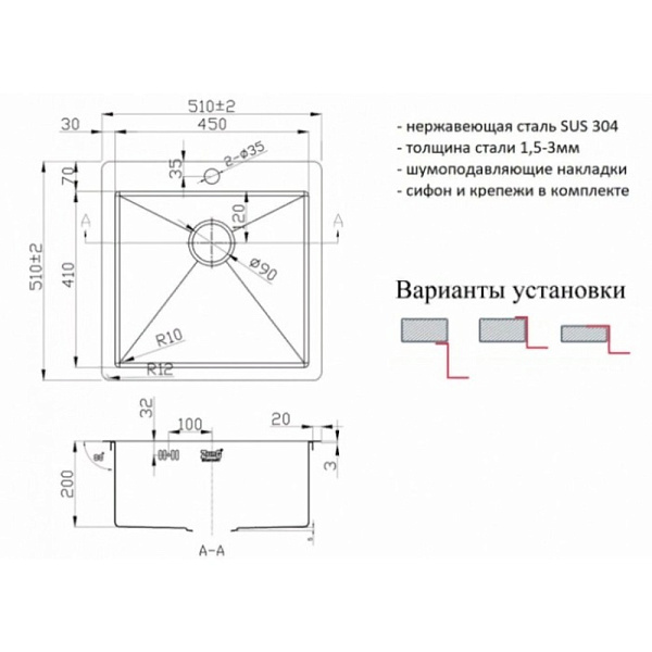 Толщина стали: 1,5-3 мм
