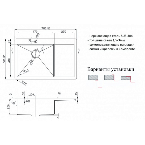 ZORG A 7851-L BR/GRAFIT мойка бронза/графит