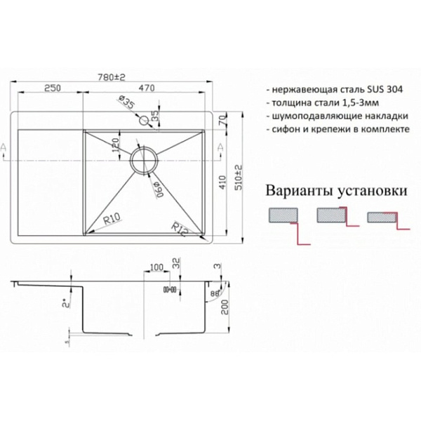 Толщина стали: 1,5-3 мм