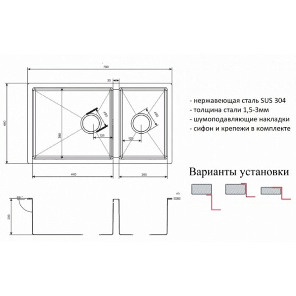 ZORG SZR-78-2-44 BRONZE мойка бронза