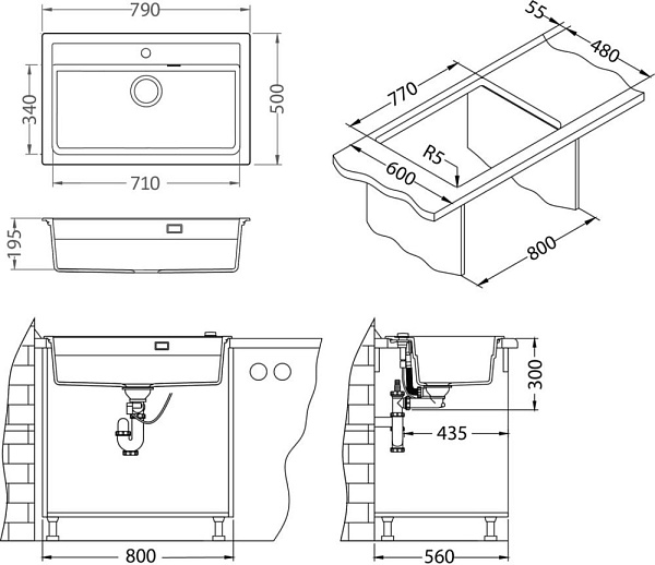 ALVEUS GRANITAL ATROX 40 CARBON мойка 1140447