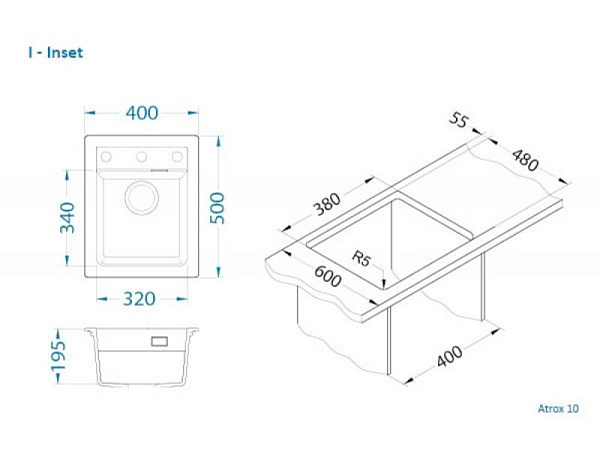 Типы установки: Классические врезные кухонные мойки (I) / Чаши для монтажа под столешницу (U)