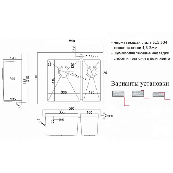 Огромным преимуществом мойки Zorg R 59-2-51 R является её универсальность установки. Вы можете установить данную модель сверзу столешницы, вровень или снизу (подстольный монтаж)