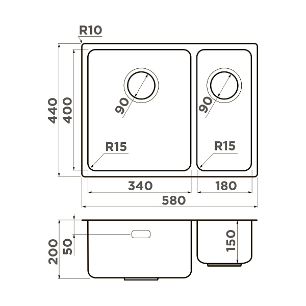 OMOIKIRI TADZAVA 58-2-U/I-IN ULTRA 15 IN-L мойка нержавеющая сталь