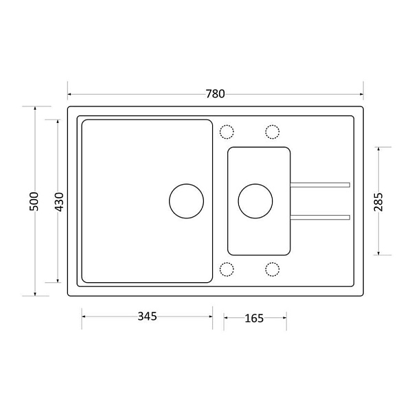 Комплектация: Отводная арматура с сифоном и корзинчатым вентилем