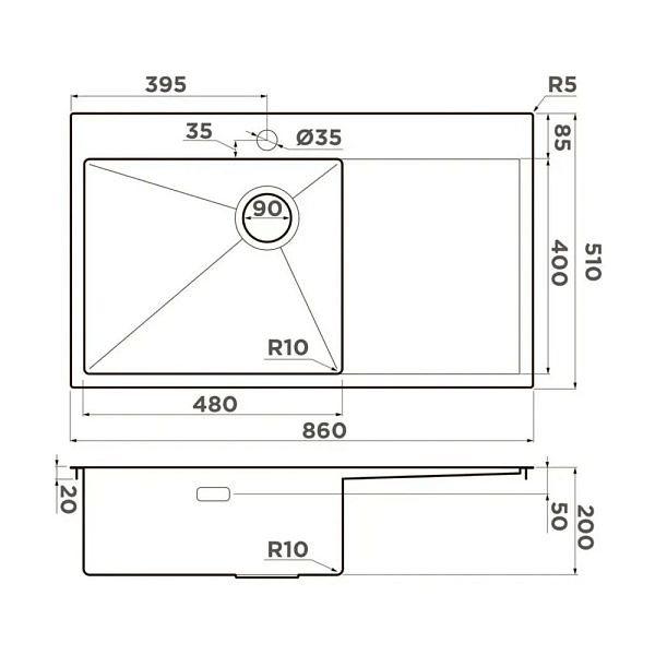 OMOIKIRI AKISAME 86-IN-L Side мойка нержавеющая сталь