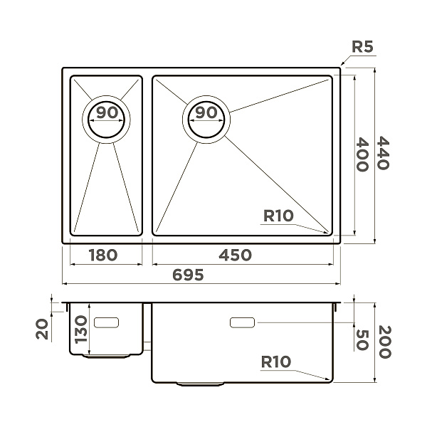 • Самый важный показатель у мойки из нержавеющей стали - толщина стали, ведь чем она тоньше, тем менее твердой, надежной и долговечной будет мойка. Для качественной мойки лучше выбирать толщину выше 0,6 мм. Мойки бренда OMOIKIRI имеют толщину от 0,7 до 1,2 мм;