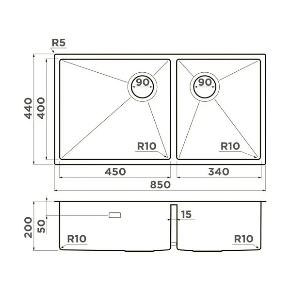 OMOIKIRI TAKI 85-2-LB-U/IF-LG Side мойка золотой