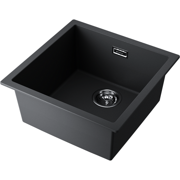 • Мойка черного цвета создана из материала «Tetogranit Metal». В его составе: акриловая смола и натуральный гранит с добавлением металлических частиц, которые придают блеск и мерцание поверхности мойки. «Tetogranit Metal» отличается максимальной устойчивостью к температурным перепадам и ударам;