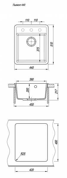 FLORENTINA ПЬЕМОНТ 440 мойка серый