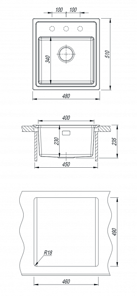Материал чаши мойки - нержавеющая сталь марки AISI 304, толщина 1 мм