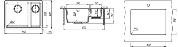 FLORENTINA ВЕГА 335/160 мойка серый шелк