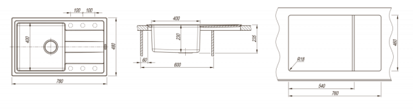 Чаша мойки - нержавеющая сталь. Марка AISI 304, толщина 1 мм.
