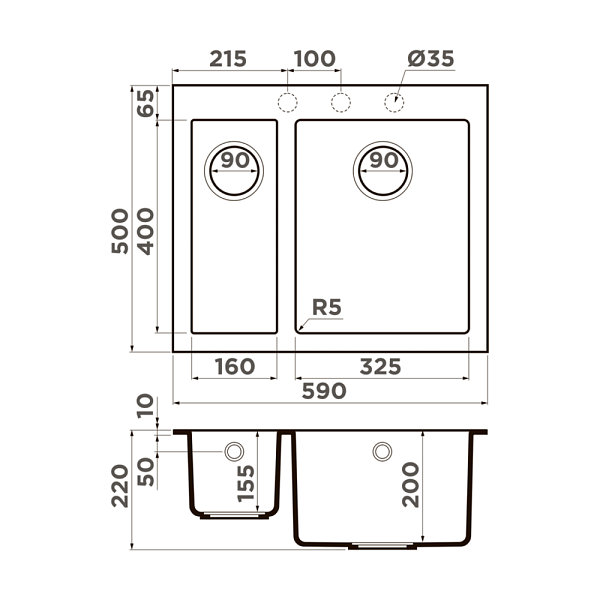 OMOIKIRI BOSEN 59-2A GB мойка серый