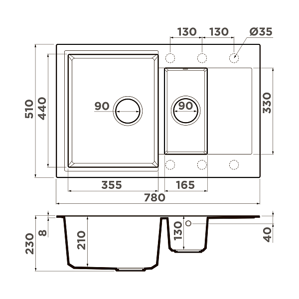 • За счет окрашивания каждой частицы гранитного материала при помощи специальной технологии, первоначальный цвет мойки гарантировано сохраняется в течение всего срока службы;