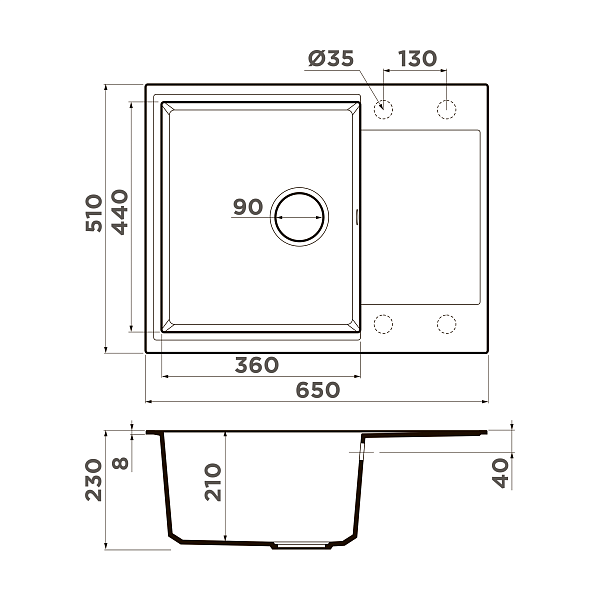 • Мойка черного цвета создана из материала «Tetogranit Metal». В его составе: акриловая смола и натуральный гранит с добавлением металлических частиц, которые придают блеск и мерцание поверхности мойки. «Tetogranit Metal» отличается максимальной устойчивостью к температурным перепадам и ударам;