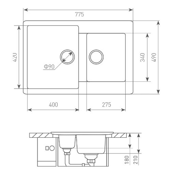 Кухонная мойка Zigmund & Shtain Rechteck 400.275 Темная скала эргономично впишется