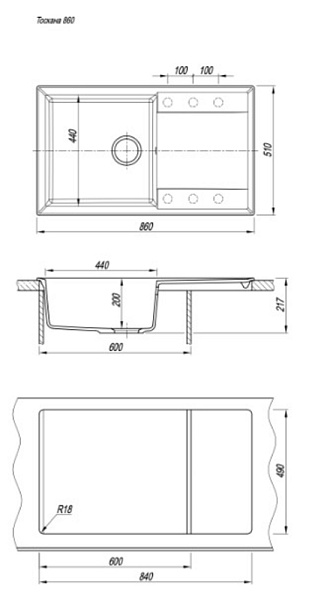 Прямоугольная мойка с большой чашей для кухонного шкафа 60 см