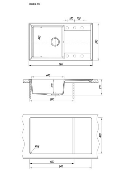 Описание Прямоугольная мойка с большой чашей для кухонного шкафа 60 см
