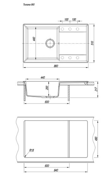 Описание Прямоугольная мойка с большой чашей для кухонного шкафа 60 см