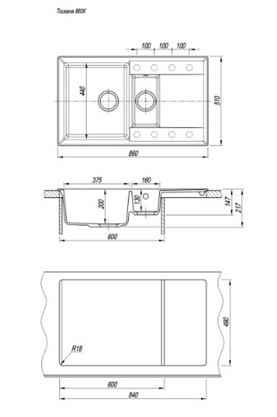 FLORENTINA ТОСКАНА 860 К мойка черный