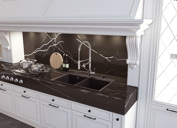 В состав материала входит природный минерал кварцевый песок 80% с добавлением микрокристобалитов, и модифицированная метакрилированная полиэфирная смола 20%.