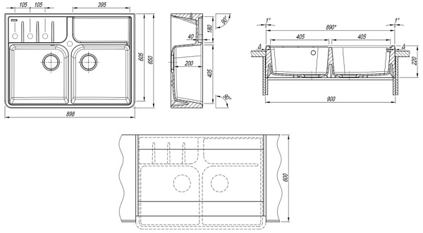 Габариты нетто ( ДхШхВ) 898х650х220 мм