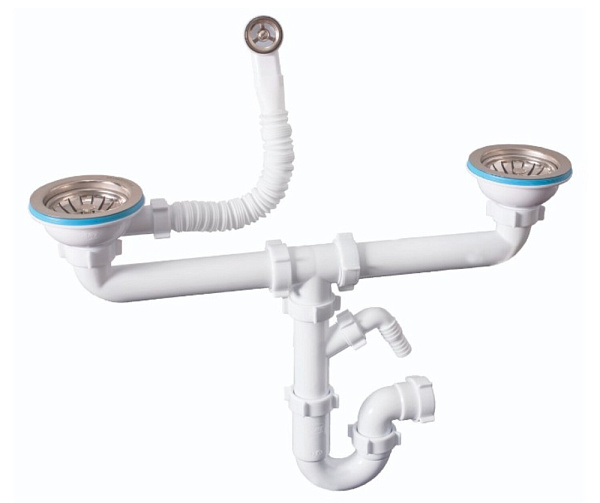 Отводная арматура с выпуском для двух одноуровневых чаш 3 ” (D=90 мм) с переливом