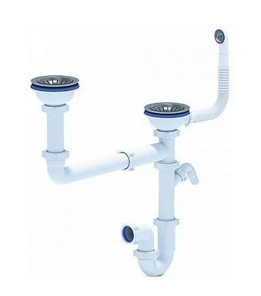 Отводная арматура с выпуском для двух одноуровневых чаш 3 ” (D=90 мм) с переливом