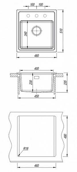 В Комби 480 предусмотрены 3 отверстия под аксессуары и смеситель,