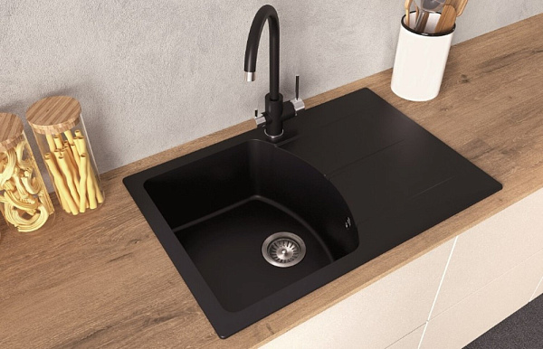 Капли воды не растекаются по поверхности мойки, обеспечивая низкую степе