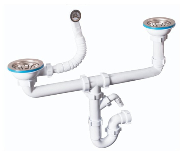Комплектация: Отводная арматура для двух разноуровневых чаш с выпусками 3 ” (D=90мм) и переливом