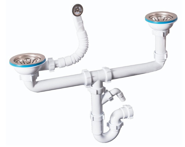 Отводная арматура для двух разноуровневых чаш с выпусками 3 ” (D=90мм) и переливом