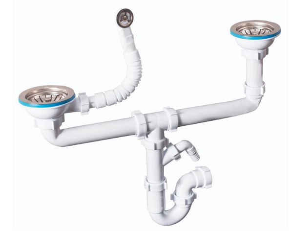 Отводная арматура для двух разноуровневых чаш с выпусками 3 ” (D=90мм) и переливом