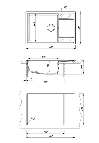 Капли воды не растекаются по поверхности мойки, обеспечивая низкую сте