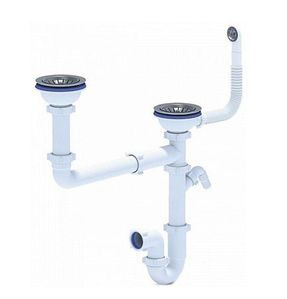 Комплектация Отводная арматура для двух разноуровневых чаш с выпусками 3 ” (D=90мм) и переливом